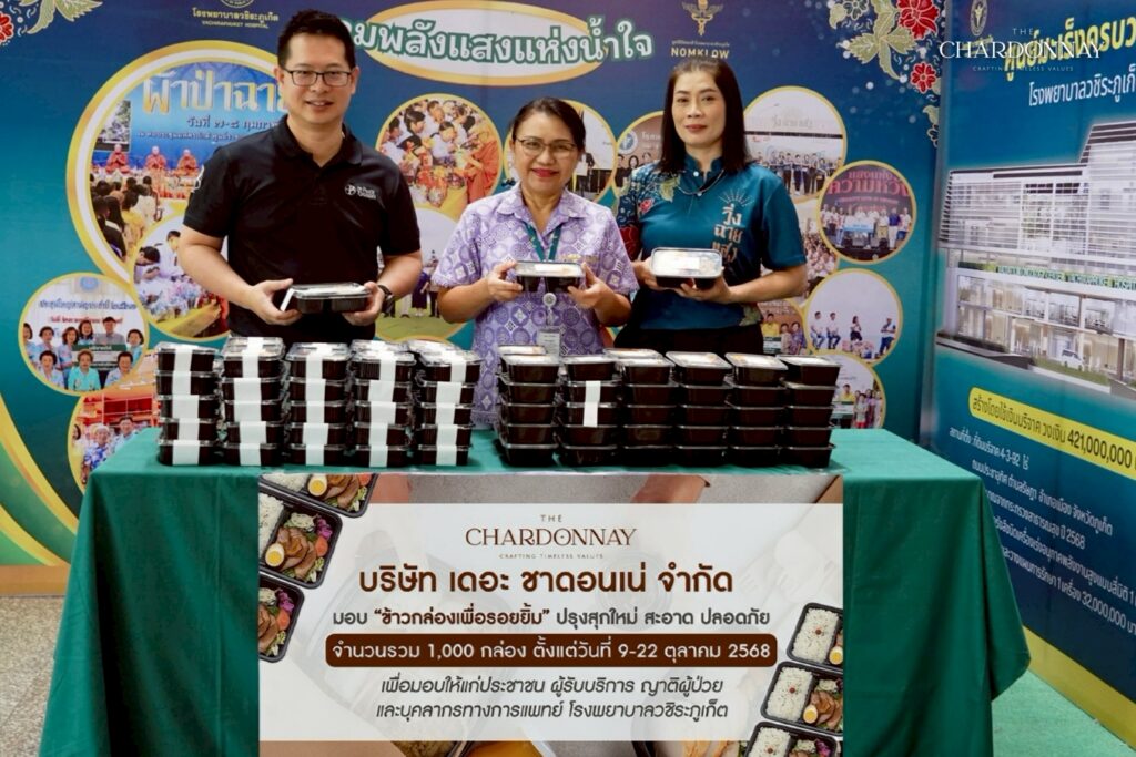 The Chardonnay Co., Ltd. Proudly standing beside the medical team and everyone visiting Vachira Phuket Hospital. “Healthy Meal, Happy Smiles” Providing 1000 complimentary meal boxes within 10 days for hospital staff and visitors at Vachira Phuket Hospital. Because we believe that even the smallest act of kindness can spark the brightest smiles and encouragement.